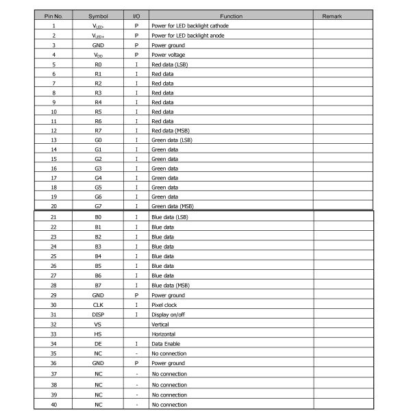 4.3 inch TFT LCD with 40pinRGB interface and 300nits Brightness